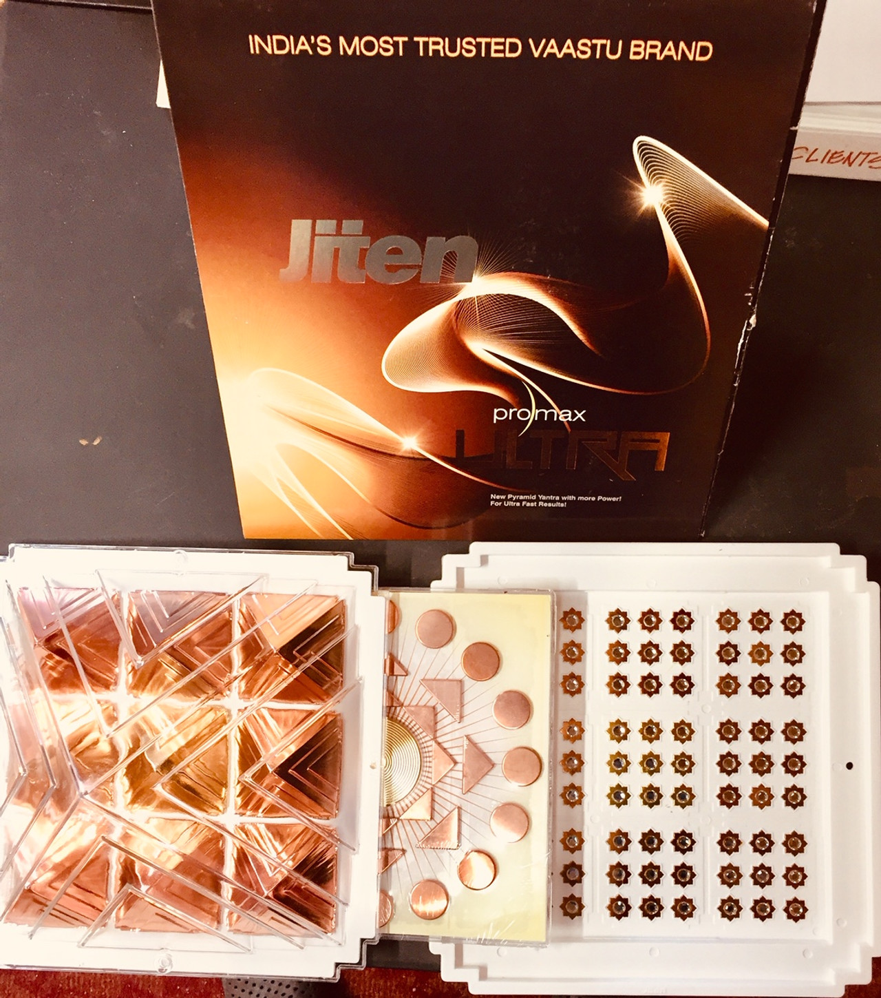Empowered with nine energy layer pyramid First time, one gold in center and 8 copper pyramid Supported by cosmic harmonizing plate at bottom with 81 copper max chips 9 gold booster ring plate, with 72c directional copper arrows, 81 copper yantras, with 81 radiant crystals. Plus 9 gold with 72 copper plates MYSTIC BENEFITS. Due to its powerful 9 energy grids, it generates and transmits positive motivating force in your property. Great results can be achieved with this innovative Promax due to its powerful design. It Can solve problems which normally looks impossible EASY TO USE Place it on table or on ceiling at your home or office Just place your wish on paper on crystals and copper yantras Use for three months to crystalize beneficial results